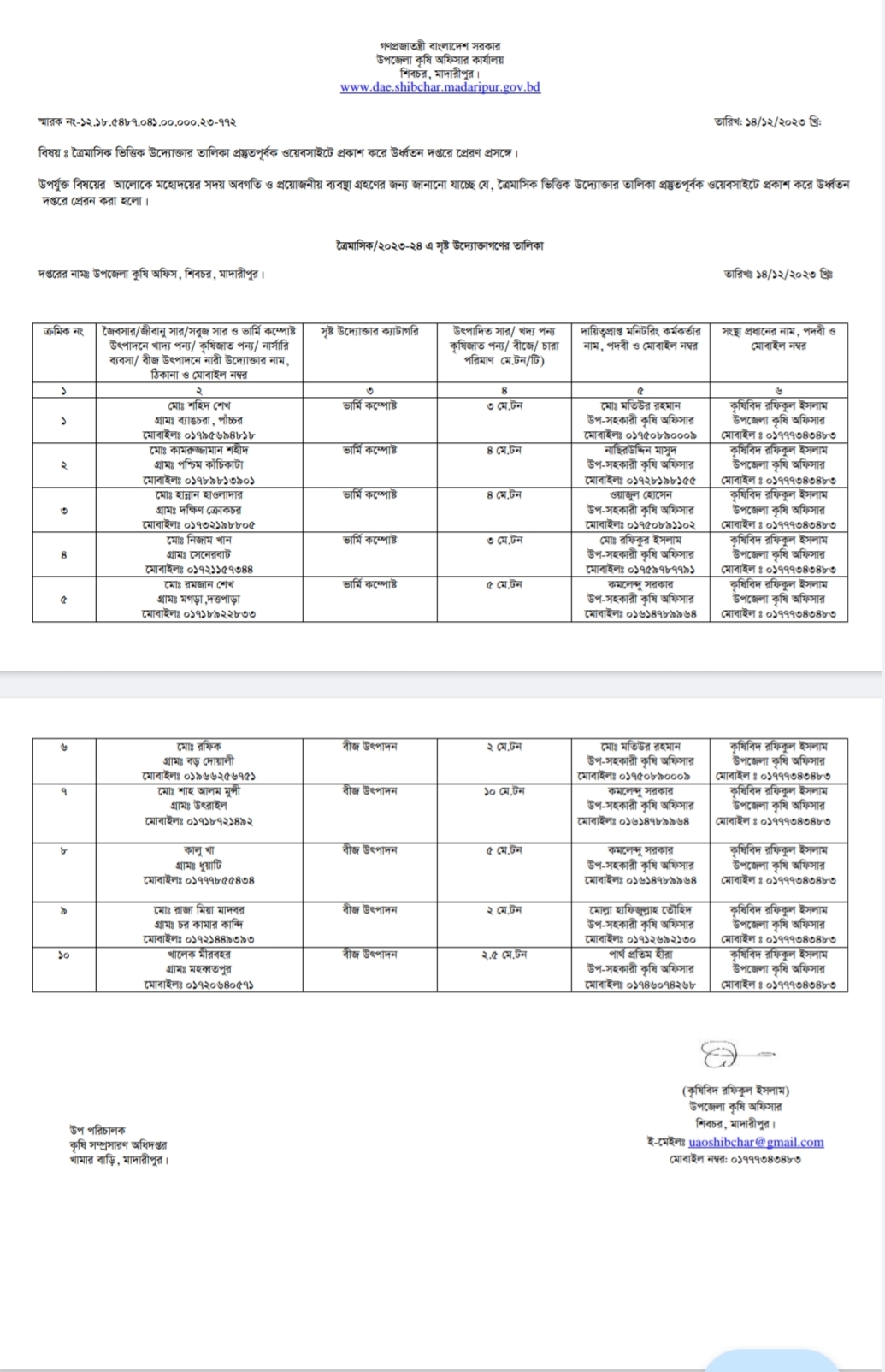 শিবচর উপজেলার উদ্যোক্তার তালিকা
